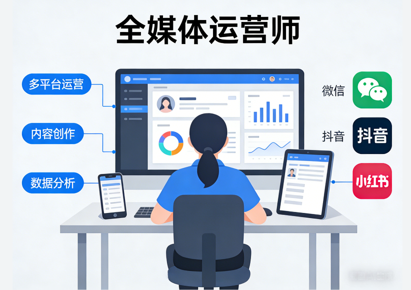 全媒体运营师是人社部 2020 年正式公布的新兴职业(职业编码:4-13-01-05),依据 2023 年版国家职业标准,由人社部 + 国家广播电视总局联合制定职业规范,是数字传播领域的官方认证专业人才。