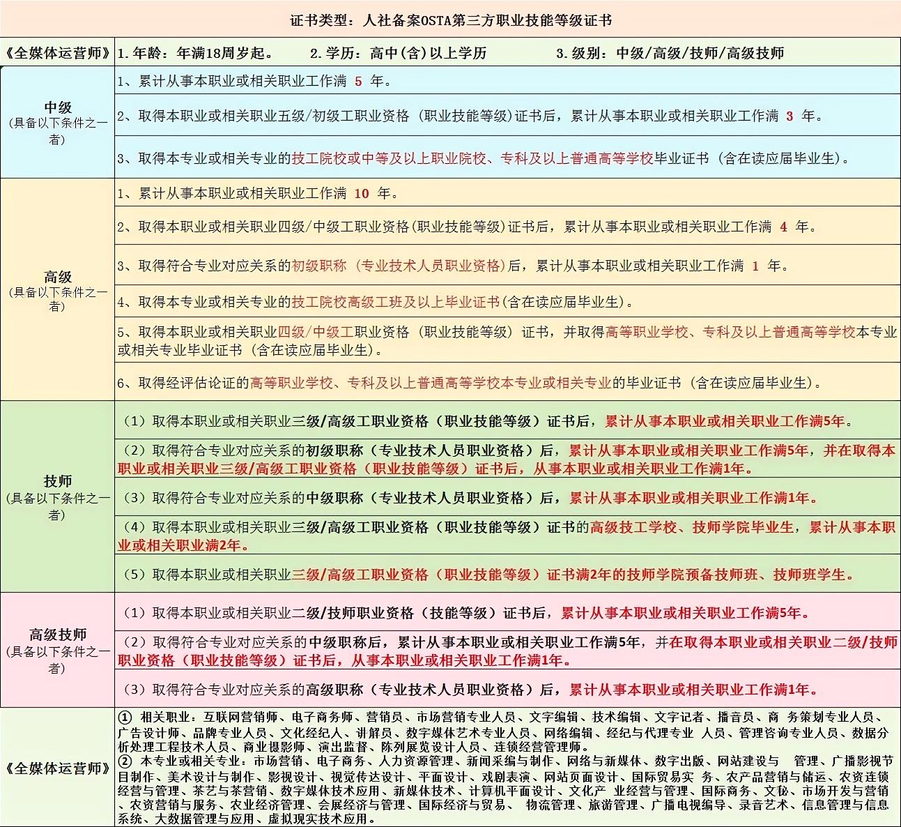 1. 证书名称:全媒体运营师职业技能等级证书;